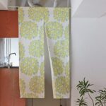 QUARTER REPORTのれん フロートは、W85×H150cmのサイズで、岡理恵子デザインの北欧スタイルの間仕切りカーテンです。キッチンやリビングにぴったりのグリーンカラーが特徴です。