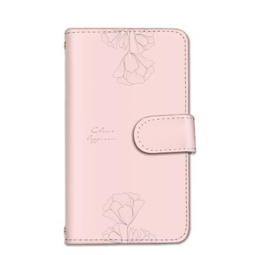 seventwoのらくらくスマートフォンケースF-42Aは手帳型で、PUレザー製。カード収納が可能で、シンプルな線画の花柄デザインが特徴。C.ベビーピンク色で、女性に人気のアイテムです。