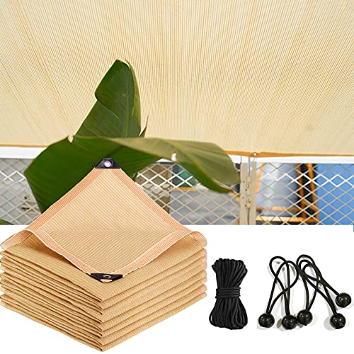 日除けシェード、遮光率90%のベージュカラー。サイズは7x11mで、家庭用やアウトドアに最適。簡単取り付け、風通し良く目隠し効果も有り。
