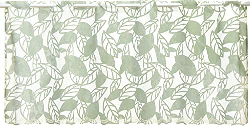 のれん工房の小窓用カフェカーテンは、北欧デザインのシルエットリーフ柄でおしゃれです。サイズは幅120×45cm、色はグリーンで、インテリアにぴったりのアイテムです。