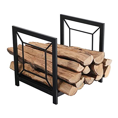 頑丈な薪ラック、金属製ログホルダー。屋内外対応、家庭用暖炉やファイヤーピット用の薪収納に最適。サイズ:43x33x45cm。