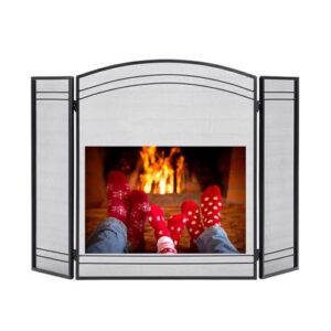 ストーブガード 幅36インチ、高さ24インチの暖炉スクリーン、 屋内用3パネル折りたたみ式防火炉ガードカバー、 頑丈な薪ストーブ耐性メッシュ ヒンジ ゲート
