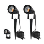 2025年改良のLEDガーデンライト。電球色2700K、10Wで1280ルーメンの明るさ。IP66防水対応、回転可能なデザイン。埋込型と壁掛け式の二通りの取り付けが可能。寿命は5万時間、PSE認証済み、コード長3m。