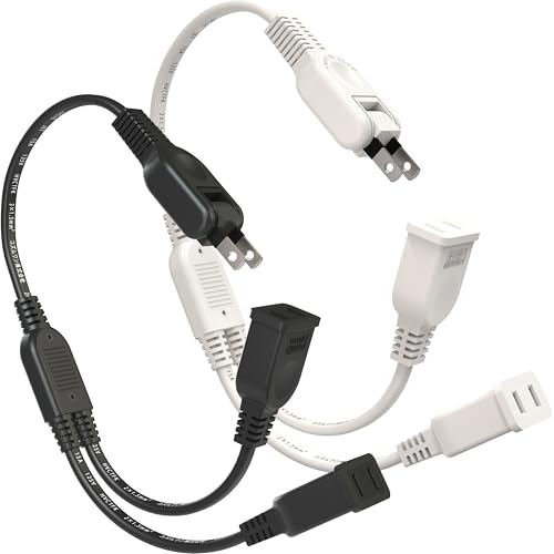 FUMITAKEの電源タップは、短い40cmで2個口のACアダプタ用。125V、15A、1500W対応。181度スイング可能で、絶縁キャップ付き。色はブラックとホワイトから選べます。