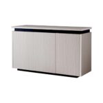 モアの日本製サイドボードは幅120cmで、リビングの収納に最適です。木目調のデザインで、開き戸のスタイル。色はウッディホワイト、黒、ブラウン、ナチュラルから選べます。完成品でおしゃれな北欧スタイルの大川家具です。