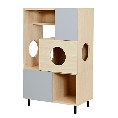 JKプランのキャビネットは、猫のトイレ収納やキャットウォークとして使えるオープンキャビネット。インテリアとしても優れたデザインで、ペット用品の整理や猫家具収納に最適。猫が遊べるスペースも確保。
