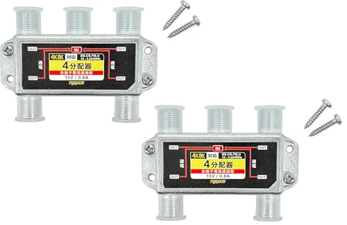 F-Factoryのアンテナ4分配器は、4K8K/BS/CS/地デジ/CATVに対応し、全端子電流通過型です。3224MHz対応で、2個入り。高信号品質を維持しながら最大4台のテレビに分配可能です。
