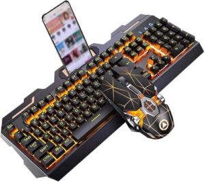 Nihigゲーミングキーボードマウスセット 光るキーボード マウスパッドとヘッドフォン付き 発光 USB接続 厚くなった底板 耐久性のある 快適な感触 (白と青混合光)