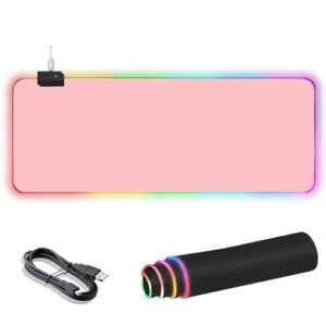 大型マウスパッド ゲーミング マウスパッド 12 種類のRGB照明効果 防水マルチスパンデックス表面 滑り止めゴムベース 800*300*4mm (ピンク)