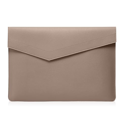 HinZannの13.3~14インチ対応スリーブケース。軽量PUレザー製、衝撃吸収、防水機能付き。MacBookやLenovo、Dell、HP、ASUS、Surfaceに適合。ブラウンカラー。