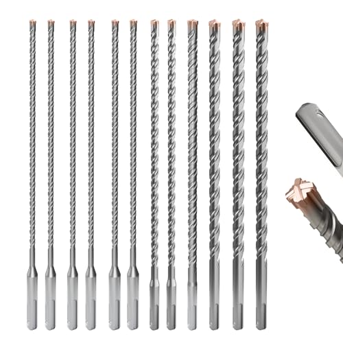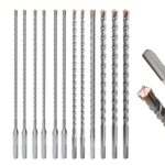 SDS Plusロータリーハンマードリルビットは、12個セットで5/32インチから5/8インチまで対応。超硬切削エッジが4つあり、石積みに最適な頑丈な石工専用ビットです。