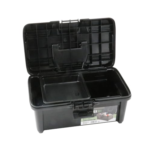 SK11ツールボックスFRE-380BKは、耐久性に優れたハードタイプで、サイズは幅380×奥行230×高さ180mm。中皿スライド機能があり、積み重ねも可能です。