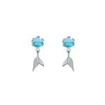 友達やファッションにぴったりな、ブルーシークリスタルを使ったマーメイドスタッドピアス。美しいフィッシュデザインのブレスレット、リング、ペンダントとのセットで、特別な日のアクセントに最適です。