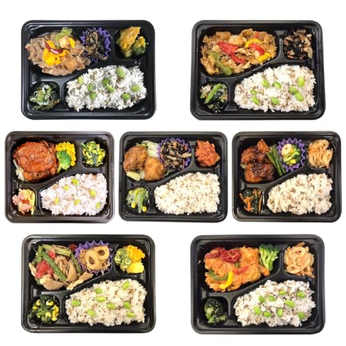 ご飯付き(もち麦)の冷凍弁当です。ボリュームコースは7食入りで、お惣菜の種類も豊富。おかわり可能で、手軽に美味しいおかずを楽しめる弁当です。冷凍食品なので、保存も便利です。