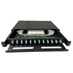 FSiyoudaの12ポートLCマルチモードデュプレックスラック取り付けエンクロージャ。引き出し式デザイン、24個のLCポート、24コアOM3 1.2Mピグテール付。1U 19インチラック対応。
