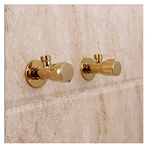 金の固体黄銅製の角度弁は、浴室水栓やトイレ用の便利な停止水を提供します。耐久性に優れたデザインで、キッチンやバスルームに最適です。2個セットでの販売。