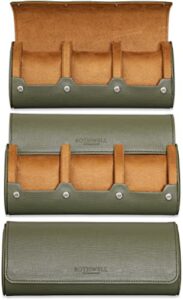 ROTHWELL (ロスウェル) 腕時計ロール トラベルケース 腕時計3本用 | タフなポータブル保護 50mmまでのすべての腕時計とスマートウォッチに対応 (グリーン/タン)