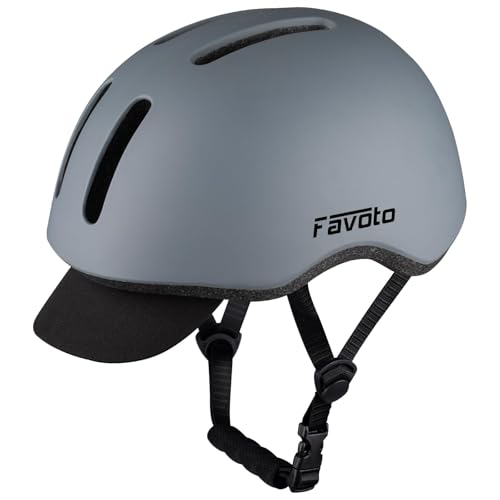 Favoto 自転車ヘルメット ロードバイク ヘルメット 耐衝撃 通気性 自転車用ヘルメット 超軽量 アゴパッド付き バイザー付き サイズ調整可能54cm-62cm 脱着可能シールド CE認証(EN1078) サイクリングヘルメット 街乗り 通勤 通学 男女兼用 グレーの高価買取