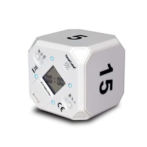 TimeCube Plus プリセット タイマー LEDライト4つ/アラーム付き 時間の管理用 カウントダウン設定 (ホワイト – 5分 15分 30分 60分)