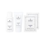 福美水トラベルスキンケアセットは、化粧水50ml、クリームジェル30g、クレンジングミルクパウチ2個のミニサイズです。敏感肌や乾燥肌向けで、機内持ち込みにも適しています。