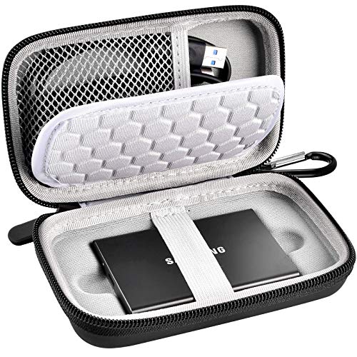 Samsung T7/T7 TouchポータブルSSD用の専用ケース。1TB、2TB、500GBモデルに対応。USB 3.2外付けドライブとアクセサリーを整理して収納、旅行に最適なブラックカラー。