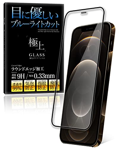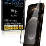 AgradoのブルーライトカットガラスフィルムはiPhone 12 Pro Max用で、全面保護と指紋防止機能があります。9Hの強化ガラス使用で日本製。365日間の保証付きです。