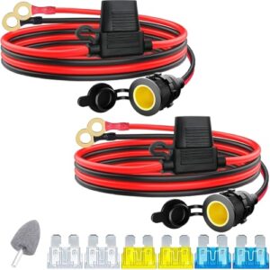 Xiatiaosann 12V/24V シガレットライターソケット – Oリング端子ケーブル14AWG 固定式車シガレットライターメスソケット – 8mmアイレット端子、20Aヒューズ付き,車、RV、ボート用