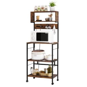 LYNCOHOME レンジラック 計4口 コンセント付き USBポート付き レンジ台 レンジボード 幅60 食器棚 キッチンラック キッチン収納 大型レンジ対応 キャスター付き(ブラウン ビンテージ ヴィンテージ)