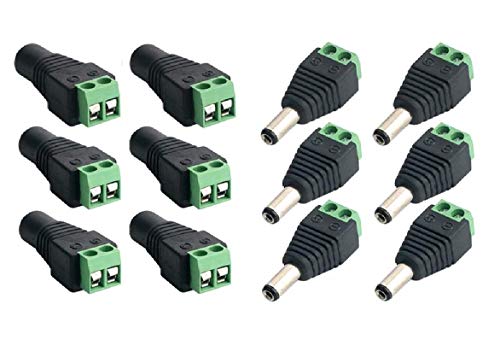 Wave Connectingの12個セット、DC 5.5mm x 2.1mmアダプタコネクタ。オス・メス各6個、CCTVカメラやLEDテープライト用に適した変換プラグ。