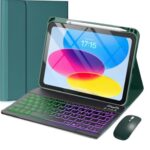 AnMengXinLingのiPad Air 11インチ用キーボードケース。7色バックライト、マウス付き、上部ペンホルダー、マグネット分離式。軽量&薄型のおしゃれなデザイン。深緑+黒のカラー。