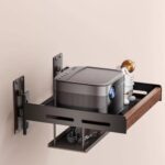 金属製の壁掛け式マルチメディアスタンド。AV機器やケーブルボックス、DVDプレーヤーなどを収納可能。スペースを有効活用し、現代的なインテリアに最適です。