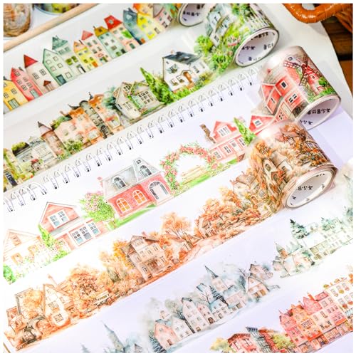 Frekyarのテープ型ロールフレークは、大容量のシールコラージュ素材。おしゃれなマスキングテープで手帳やノートをかわいくデコレーションできます。夢の町をテーマにしたデザインが特徴です。
