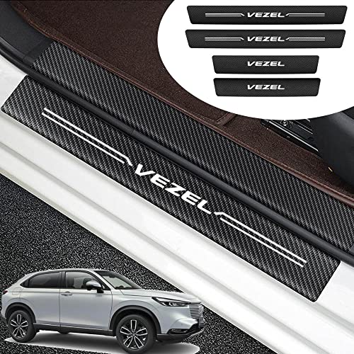 Xhfarceのホンダ新型ヴェゼルRV3/RV4/RV5/RV6用スカッフプレート。2021年4月以降の現行モデルに対応したステップガード。スカーボン調の革素材で防キズ・防汚れを実現する4点セット。