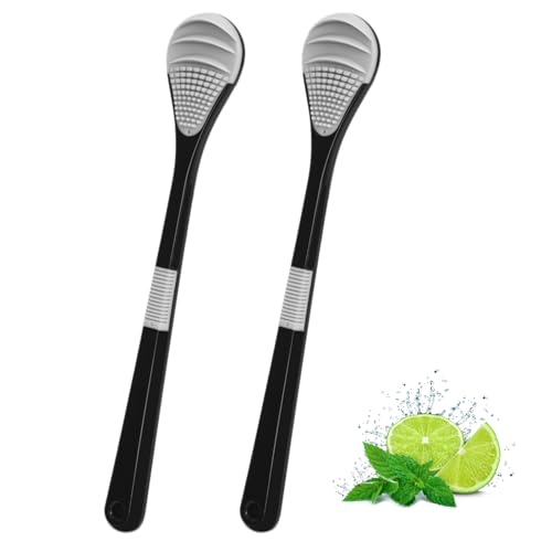 FYY舌ブラシは大人と子供用の舌スクレーパー2個パック。快適なグリップハンドル、ソフトブリストル、ハンギングフック付きで口臭軽減、オーラルケアに最適。