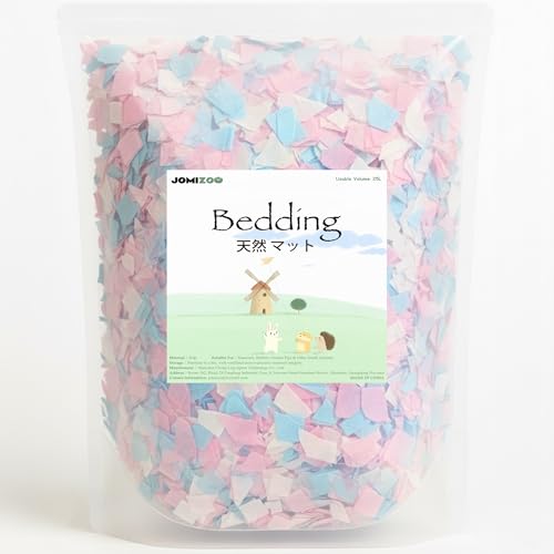 JOMIZOOのエアリーシリーズ床材は、3倍ふんわり設計で無臭・無粉塵。通気性が良く、柔らかい天然広葉樹パルプを使用。ハムスターやデグー、チンチラ、ファンシーラット、フクロモモンガなど小動物に最適。容量は25Lで、かわいいピンクブルーのデザインです。