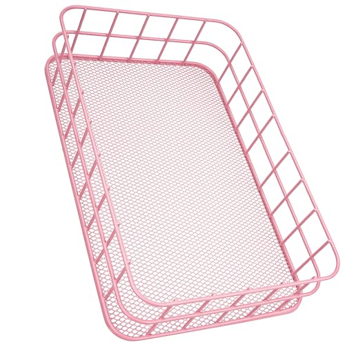 JANKOWメタルワイヤーバスケットは、格子状デザインのアイアン製オーガナイザーです。オフィスやホームに最適な収納トレイで、ピンク色が可愛らしさを演出します。