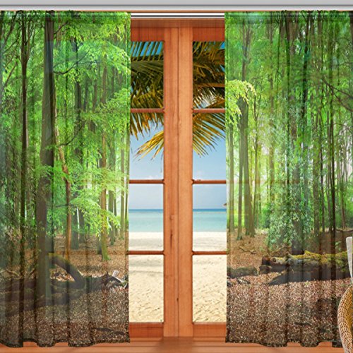マキク(MAKIKU) レースカーテン 遮光 断熱 遮熱 ミラーレースカーテン ドアカーテン おしゃれ シェードカーテン 森 緑 グリーン アメリカ式 北欧 欧米風 ヨーロッパ風 UVカット 薄手 目隠し 幅140cm×丈200cm 2枚組