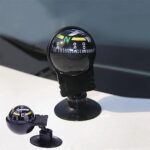 車載コンパスは吸盤式で360度回転可能な高精度ボール型。小型で読みやすく、マリンコンパスや羅針盤として車内や屋外でのナビゲーションに対応。