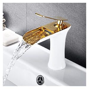 浴室水栓 背の高い洗面器の蛇口ホワイトとゴールドの浴室の蛇口の黄銅の浴室のシンクの蛇口ミキサータップホットコールドゴールドシンク蛇口 キッチン・バス備品 (Color : White and gold)