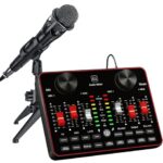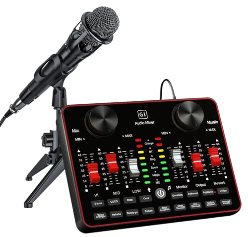 ポッドキャストマイクバンドルとライブサウンドボードミキサーがセット。3.5mmコンデンサーマイク付きで、PC/電話での音声配信に最適。ボイスチェンジャーとノイズ除去機能も搭載。