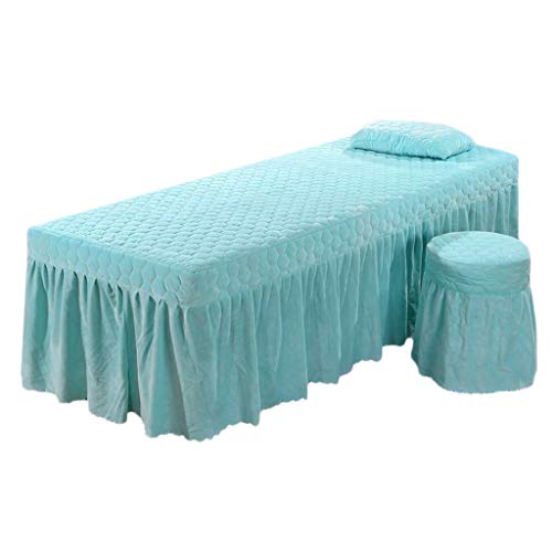 ラグジュアリーな湖の青色のスパマッサージベッドスカート。ビューティーサロンやホテル用、フェイスブレスホール付きの柔らかいベルベットカバー。サイズは185x70cm。