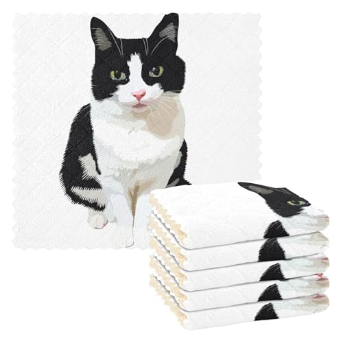 Chovvyのキッチンタオルは、可愛い黒猫デザインの6枚セット。吸水性と速乾性に優れ、食器や鍋の油汚れをしっかり拭き取ります。台拭きや雑巾としても最適な便利なアイテムです。