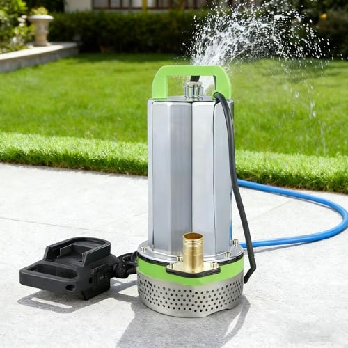 300Wの充電式水中ポンプ。最大揚程16m・大流量5000L/Hで、軽量・コードレス設計。庭園や畑、池の清掃・水抜きに最適。バッテリーは別売り。