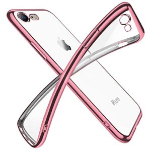 対応 iPhone SE3/SE/8/7 用ケース クリア 透明 tpu シリコン メッキ加工 スリム 薄型 4.7インチ スマホケース 耐衝撃 黄変防止 一体型 人気 携帯カバー ピンク