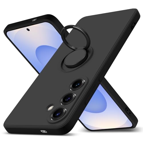 Galaxy S25用のリング付きシリコンケース。薄型で耐衝撃性、レンズ保護機能付き。360°回転式・防水・軽量デザイン。四隅の衝撃吸収や滑り止め機能も搭載し、一体型でおしゃれな仕上がり。