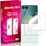 BriacicellのGalaxy Z Flip7用ガラスフィルム(2枚セット)とカメラフィルム(2枚セット)。旭硝子素材製で、9H強度・撥油性・超耐久。高光沢・超薄型・指紋防止・衝撃吸収・高透過率・飛散防止。ガイド枠付きで気泡なし、簡単貼付。