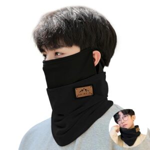 [MOWO] ネックウォーマー メンズ バイク防寒 冬 保温性 【耳かけ・ストレスフリー着用・冬のセレブ感】 フェイスカバー ネックガード ネックカバー フリース素材 小顔効果 柔らかい チクチク感なし 持ち運び便利 アウトドア・登山・通勤通学 (ブラック)