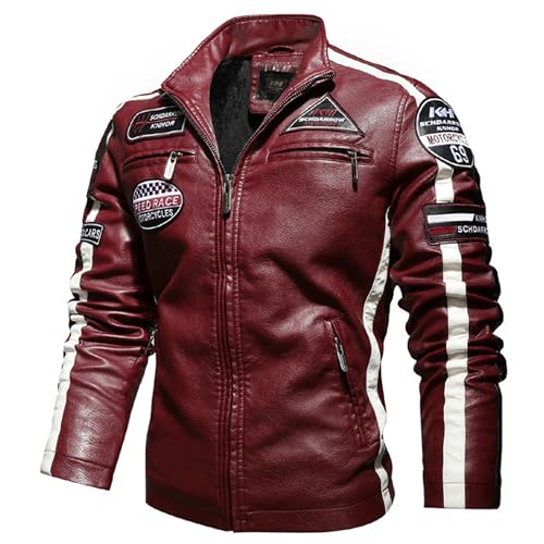 / [RENHE] バイク用レザージャケット 冬用 メンズ革ジャケット 裏ボア ライディングジャケット 防寒保温 ライダースジャケット 革ジャン 冬向け アウターコート PU革ジャン フェイクレザー 防風 レッド JP XLサイズ