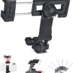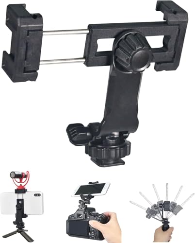 スマートフォン用ホルダーNBFは、1/4インチネジ、ホットシュー付きで、360°回転、前後チルト機能があります。折りたたみ可能で、角度調整が容易なアクセサリーシューマウントブラケットです。
