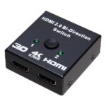 グランディオスの2WAY HDMIセレクターは、4K対応の双方向分配器・切替器で、2つの入力を1つの出力に、または1つの入力を2つの出力に切り替え可能。モデル名はGD-HDMIINOUT。
